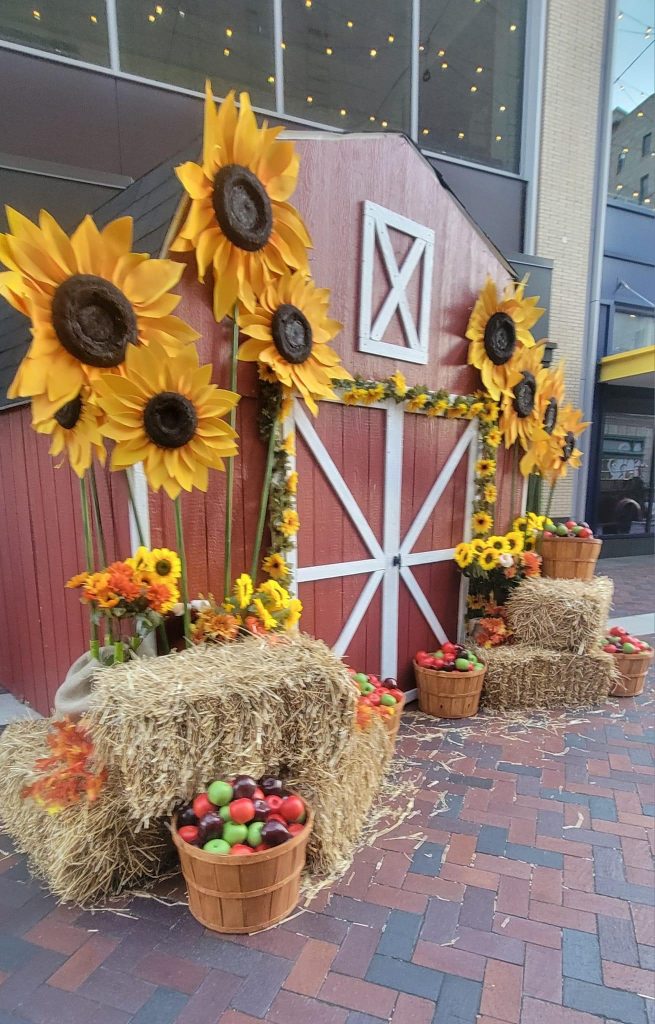 We created these Giant Sunflowers and fall decor for W. Columbia Street in Detroit…just down the street from the Tiger Stadium.