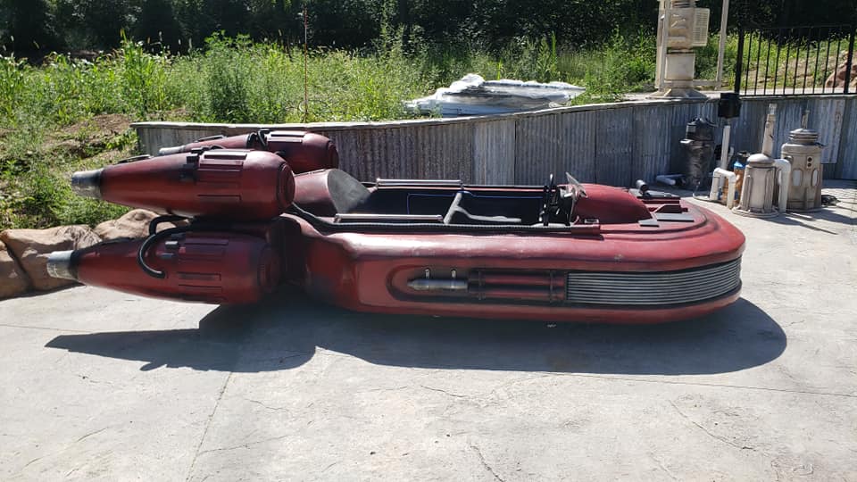 This one of a kind Landspeeder was created for a Star Wars fan family to sit pool side of their epic Star Wars themed Legendary Escapes Pool. This Landspeeder was created primarily from foam blocks, fiberglass, plywood, pvc sheet, pvc pipe and a bunch of found objects.
