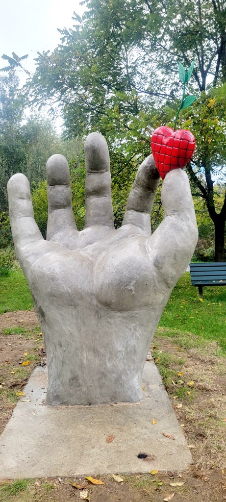 We created an 8-foot sculpture that captures the spirit of Hartland’s story—a hand, modeled after John Robert Crouse, the town’s founder, rising up to hold a woven heart transforming into a seedling. The woven heart pays tribute to Hartland’s rich history in weaving, while the seedling represents growth, resilience, and the flourishing community it has become. This meaningful tribute now stands proudly at Hartland’s Settlers Park—come experience it in person!